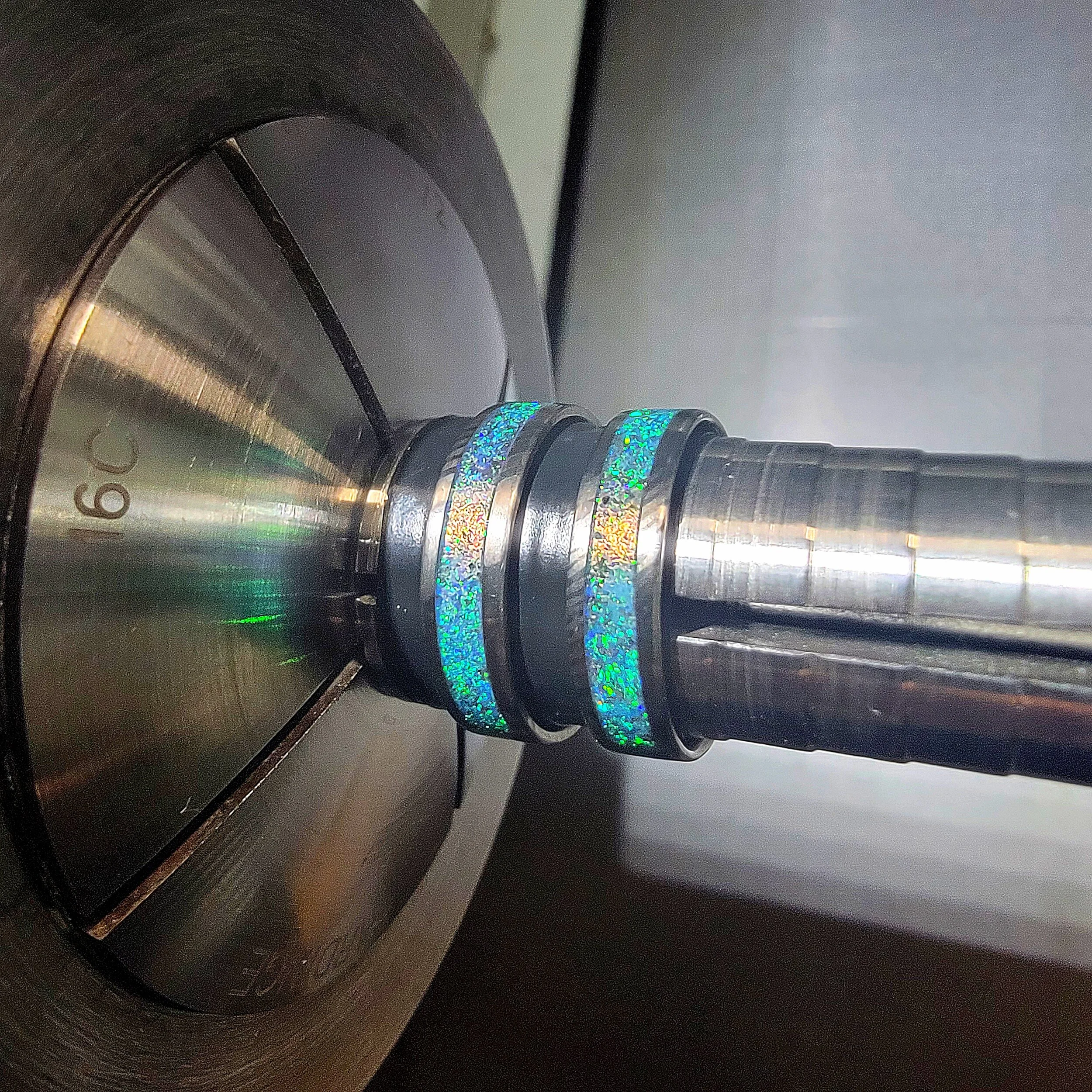 Custom inlaid rings represent a harmonious blend of craftsmanship and personal expression. These rings are meticulously crafted with a focus on integrating various materials into the band's design, creating a seamless and striking contrast or complement to the metal base. Common inlays include precious gemstones, exotic woods, vibrant enamels, or even unconventional materials like dinosaur bone or meteorite fragments, each chosen to reflect the wearer's unique style and story.